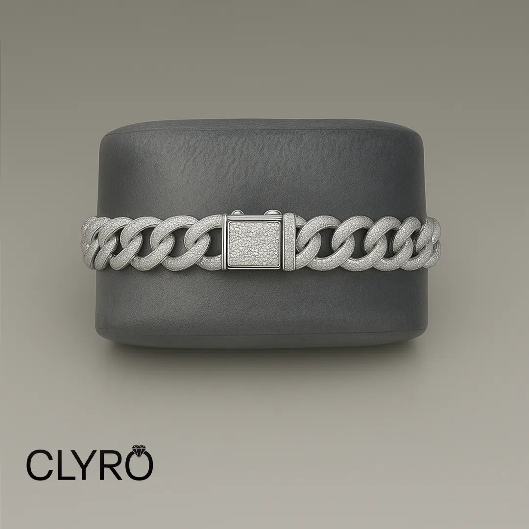 הפריט עשוי חוליות קובניות רחבות במיוחד, ומשובץ באבני זירקון דמויי יהלום - לניצוץ עשיר ונוכחות שלא ניתן להתעלם ממנה. אידיאלי שילוב בלוק יומיומי מוקפד או כתכשיט מרשים לאירועים מיוחדים.